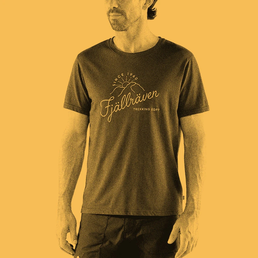 The Men’s Sunrise T-Shirt wicks away moisture and dries quickly, making it extra comfortable in warm climates and when hitting the trail. Round neckline and a “Fjällräven Trekking EQPT” Sunrise logo printed on the front. This shirt’s recycled polyester/organic cotton blend is soft, sustainable, and incredibly durable, perfect for any outdoor adventure.