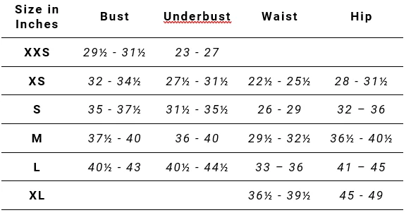– Firm 3cm customised metallic elastic around the under bust for support.