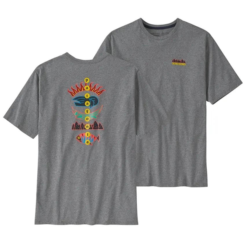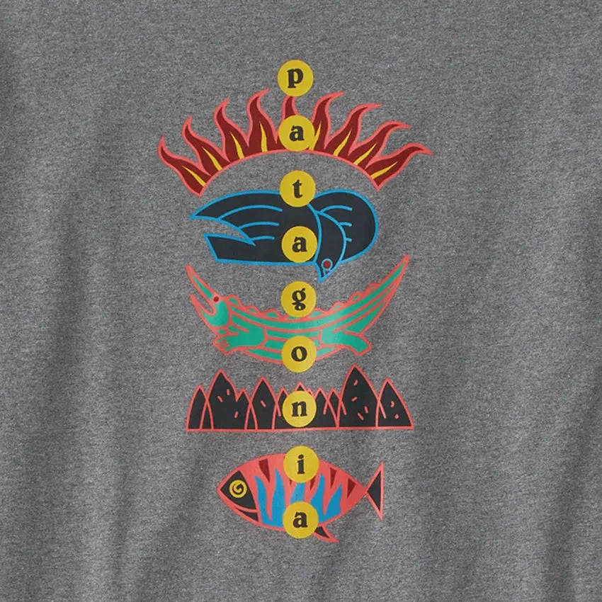 This tee’s artwork is a reissue of a classic graphic from Patagonia’s Spring/Summer 1994 line. The Patagonia name holds together symbols of the outdoor places they love and don’t take for granted. By utilising fabric scraps and recycled bottles, this 100% recycled garment reduces the reliance on virgin raw materials and is made in a Fair Trade Certifiedâ„¢ factory.