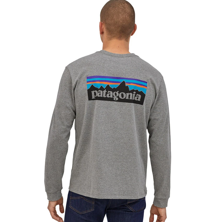 Patagonia Men’s Long Sleeved P-6 Logo Responsibili-Tee – Gravel Heather