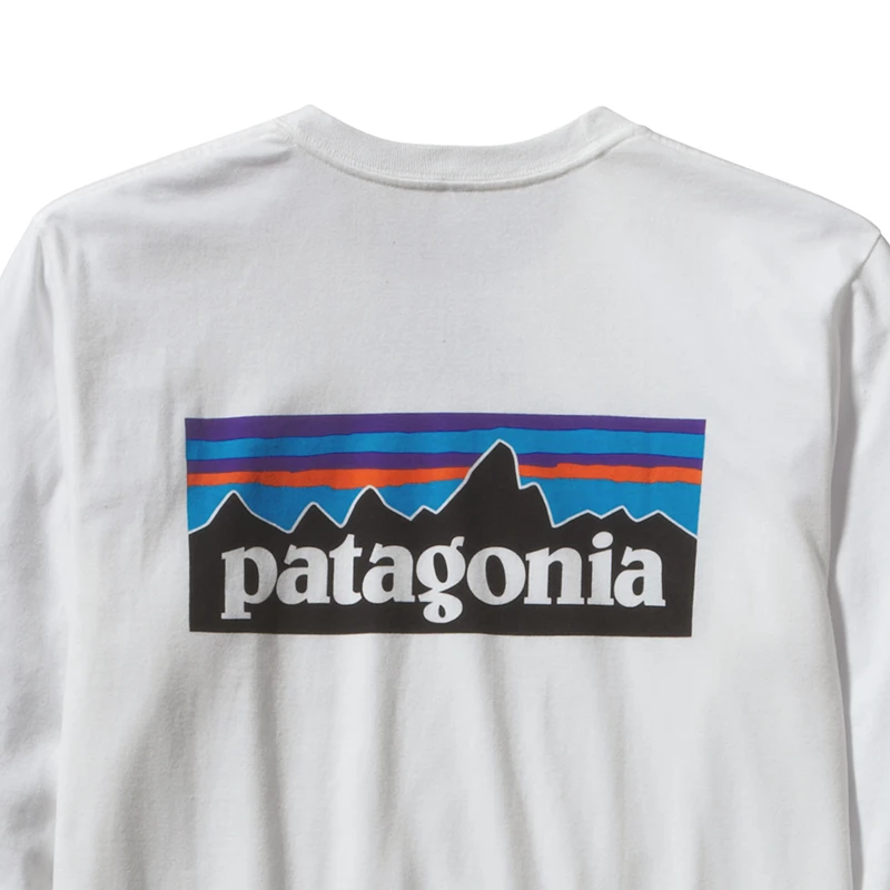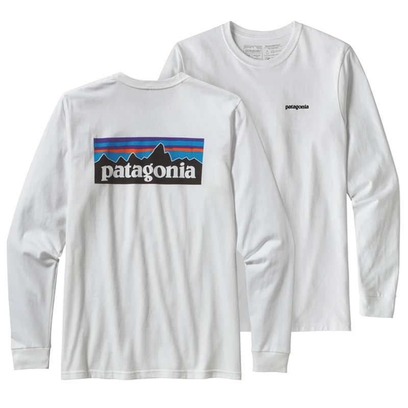 Patagonia Men’s Long Sleeved P-6 Logo Responsibili-Tee – White
