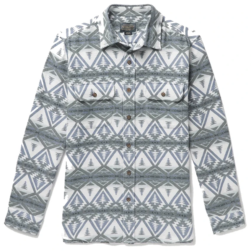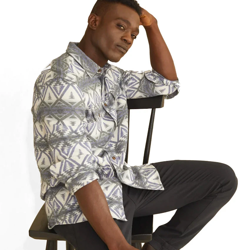 Pendleton’s bestselling men’s Beach Shack Shirt in a beautifully distinctive jacquard pattern. Crafted from a cotton chamois that’s brushed on both sides for extra softness.