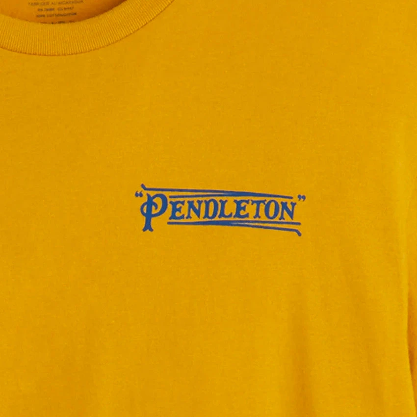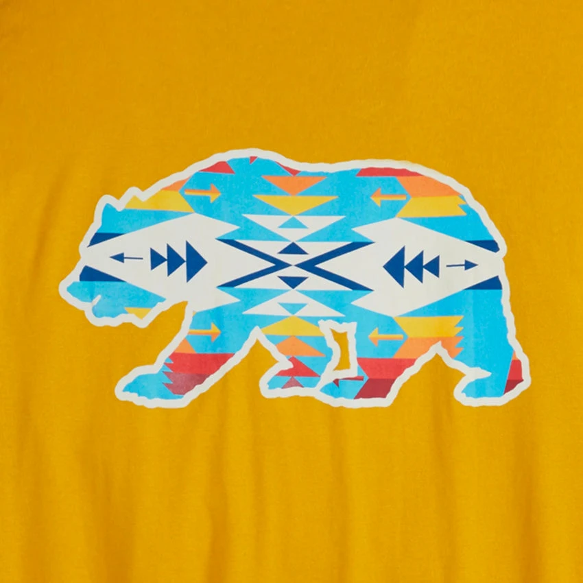 A super soft, combed cotton t-shirt from Pendleton with a blanket pattern inspired bear design on the back and small Pendleton logo on the front left chest. Supreme quality and timeless style.