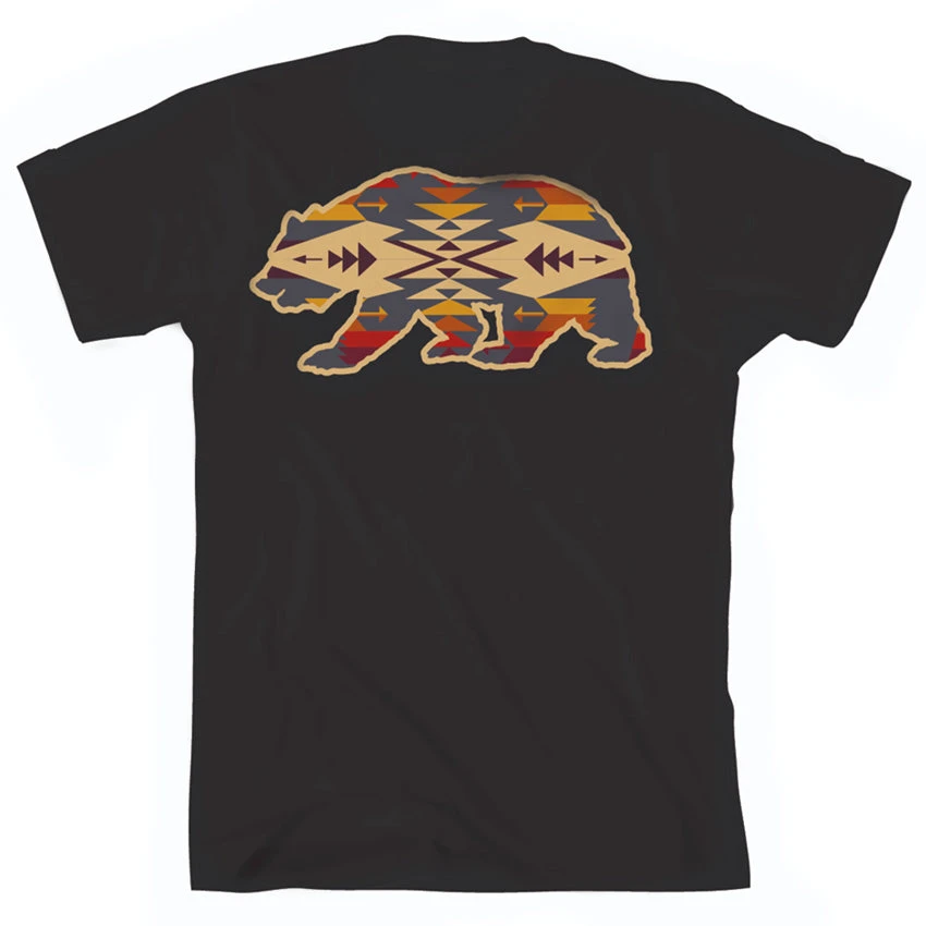 A super soft, combed cotton t-shirt from Pendleton with a blanket pattern inspired bear design on the back and small Pendleton logo on the front left chest. Supreme quality and timeless style.